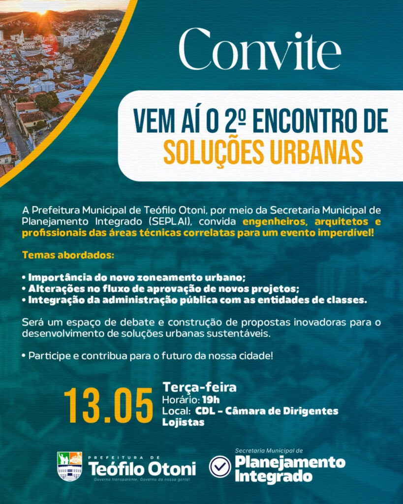 Este encontro é uma iniciativa da Prefeitura Municipal de Teófilo Otoni, por meio da Secretaria Municipal de Planejamento Integrado (SEPLAI), e o IENAM reforça o convite à participação ativa dos profissionais da engenharia!
